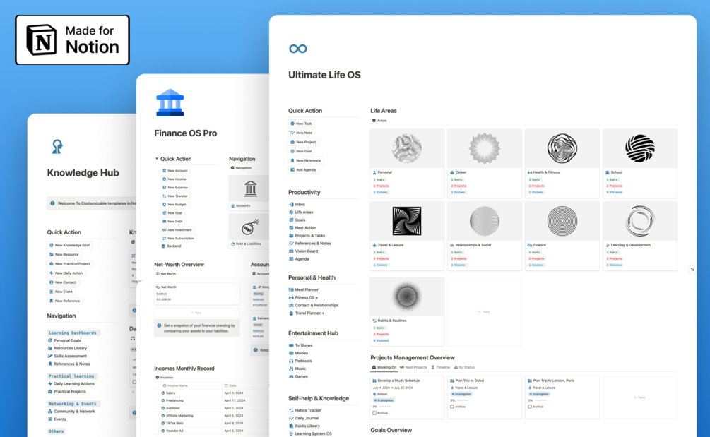 It’s a complete life management system built in Notion, helping you stay organized with features for goals, tasks, projects, and habits all in one place.