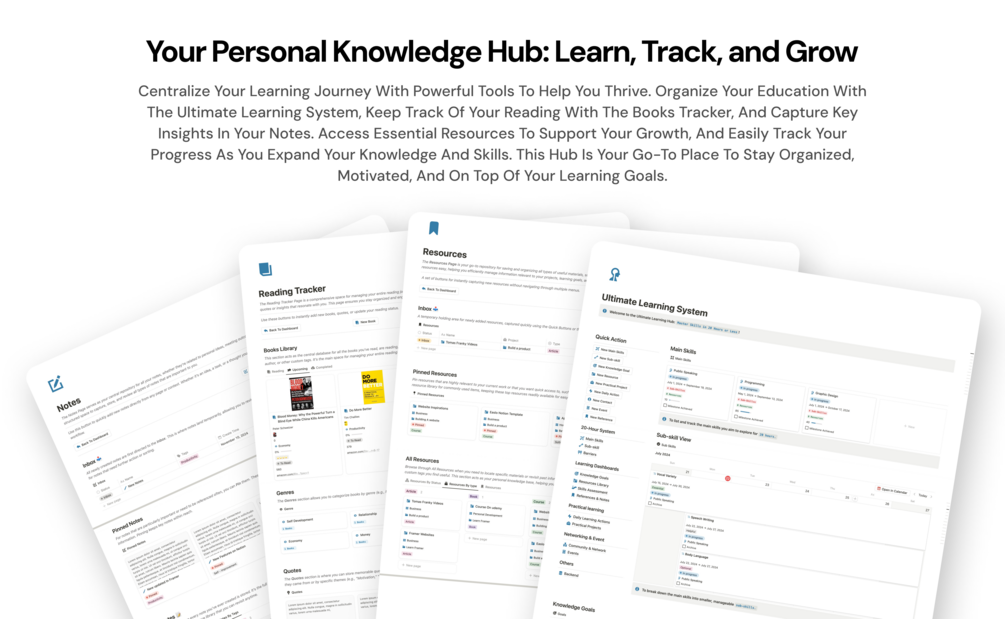 Track and manage your learning journey with tools for skill development, resources, and daily progress updates. -
